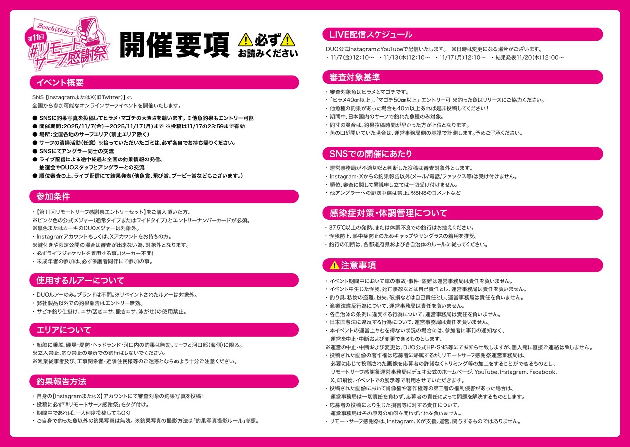 - 開催場所 全国各地のサーフ(釣り禁止エリアを除く)