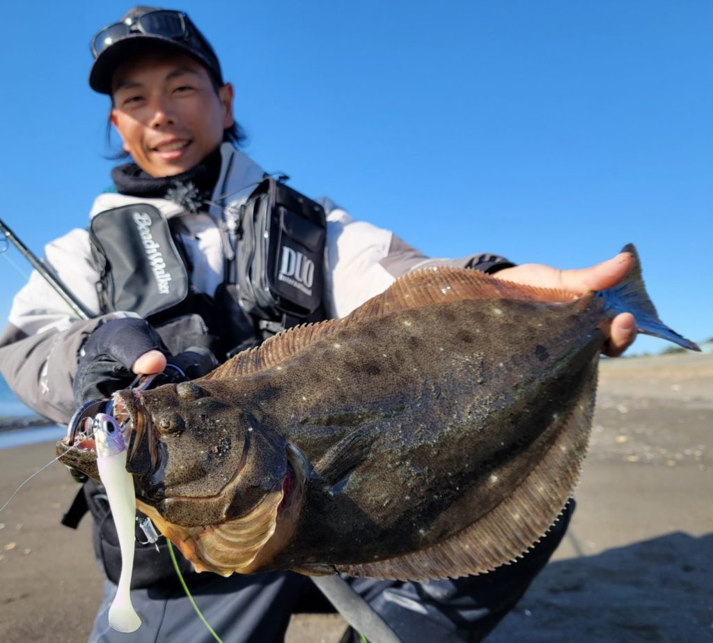 自分の釣りで確立したと言っても過言ではないハウルのゴリ巻きメソッドで探っていくと見事な50アップのヒラメ?️?