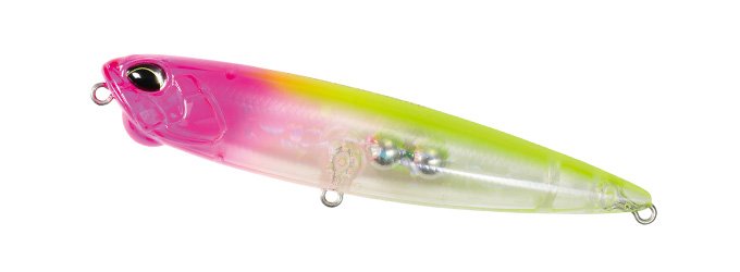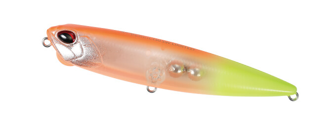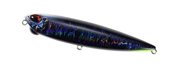 少ない移動距離で小刻みなドッグウォークを演出するリニアな回頭性能と抜群の飛距離を誇るウェイトバランスで非常に扱いやすく、緩急自在の操作系ペンシルベイトとなっています。