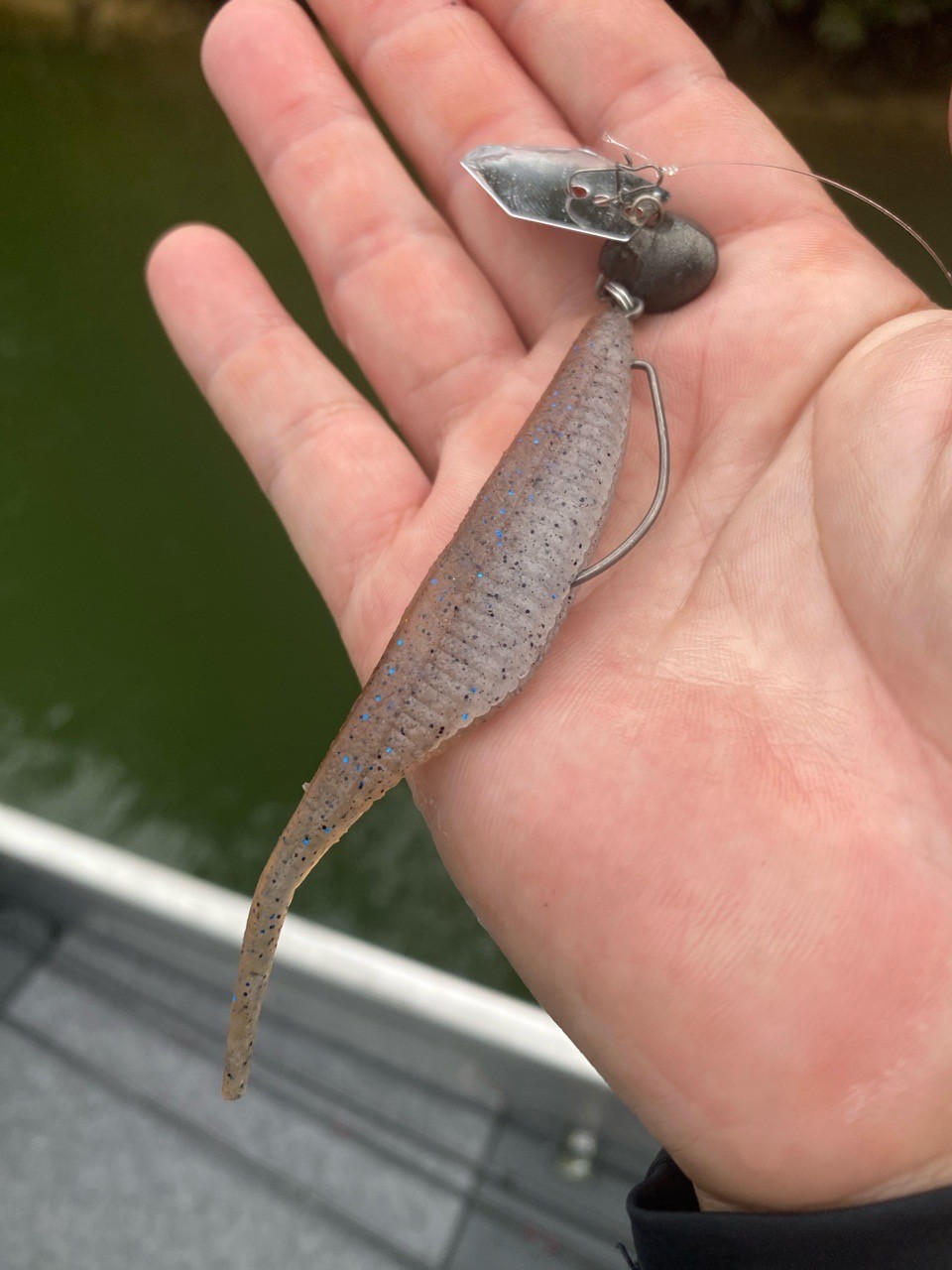リグはDECOYのスイッチヘッド(9g)にチャターブレードをセットしたもの。