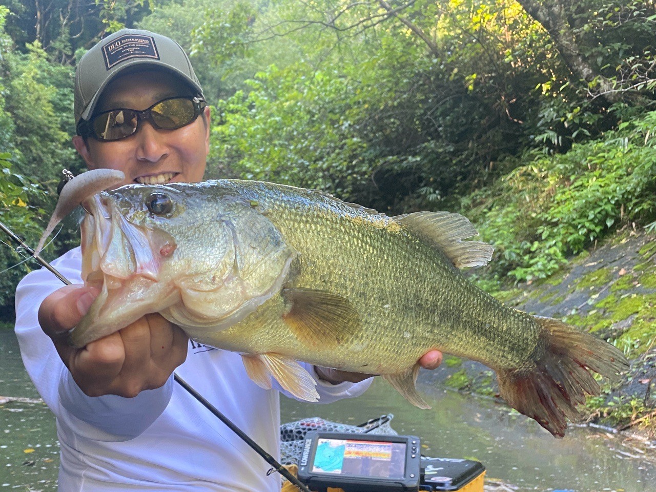 ボトムの起伏を感じ取りつつ巻き、早速一尾キャッチ!