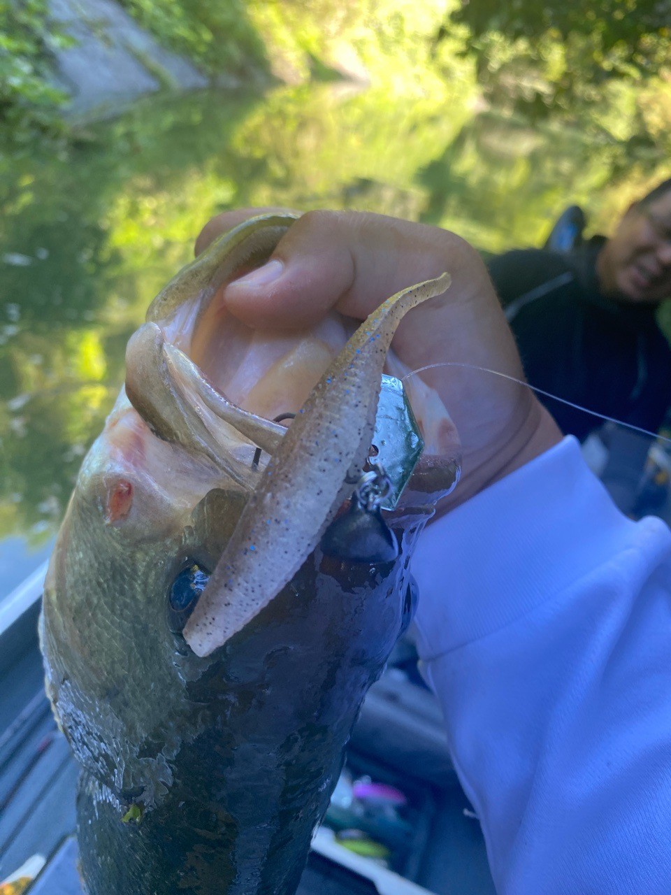 一尾目をキャッチしたリグで同じトレースコースを通すとデジャブのようにアタリ二尾目をキャッチ!したところで雨足が強くなり納竿。