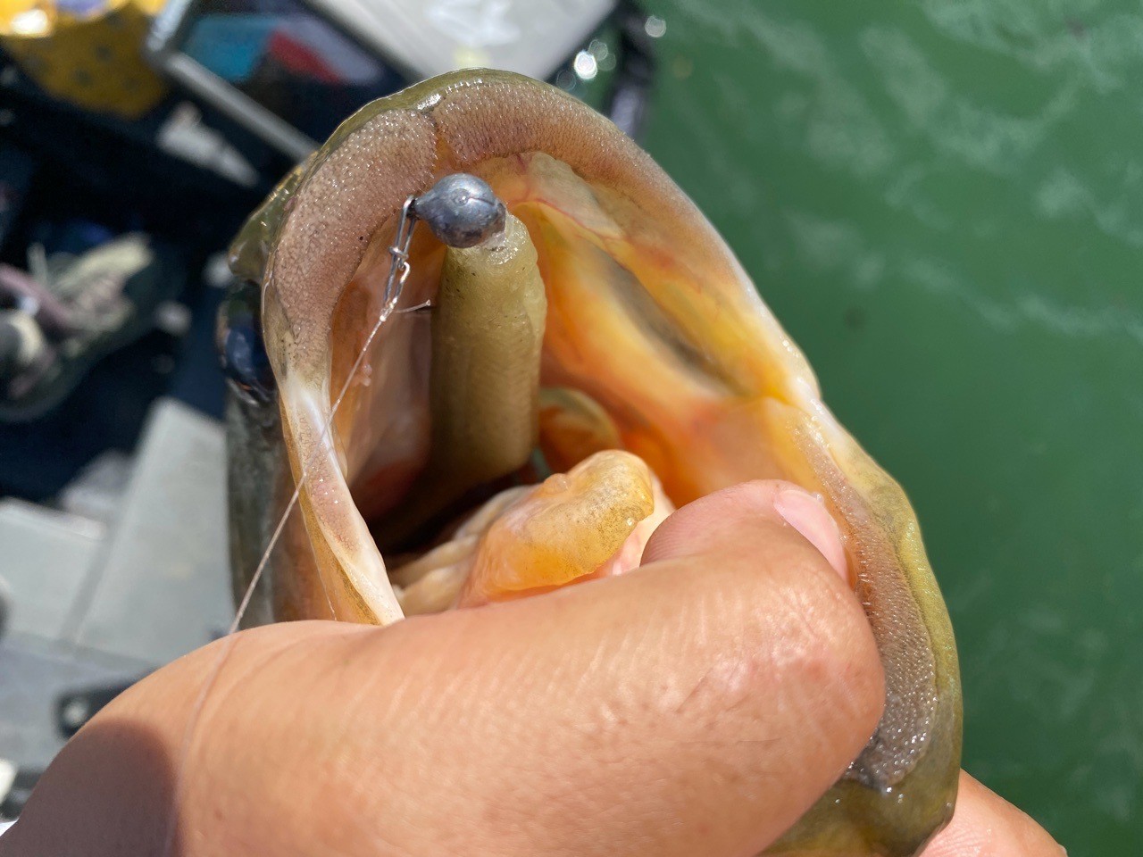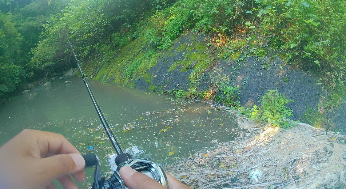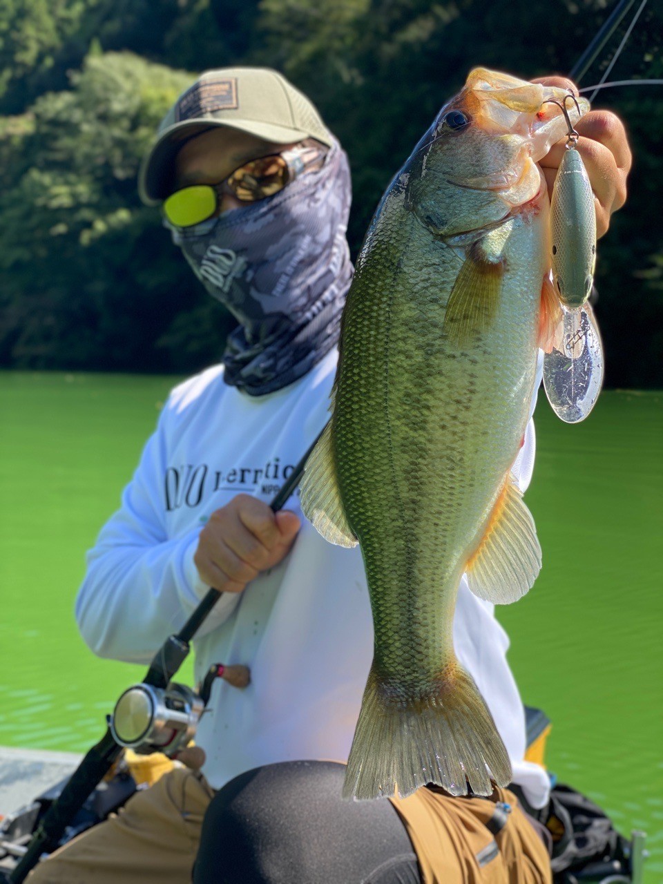 アオコの膜とオーバーハングがシェードを形成し、バスの寄り場所となりそうだったのでじっくりと見せる作戦が功を奏しました。
