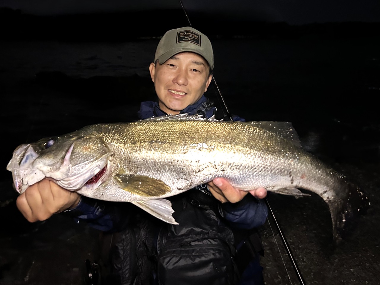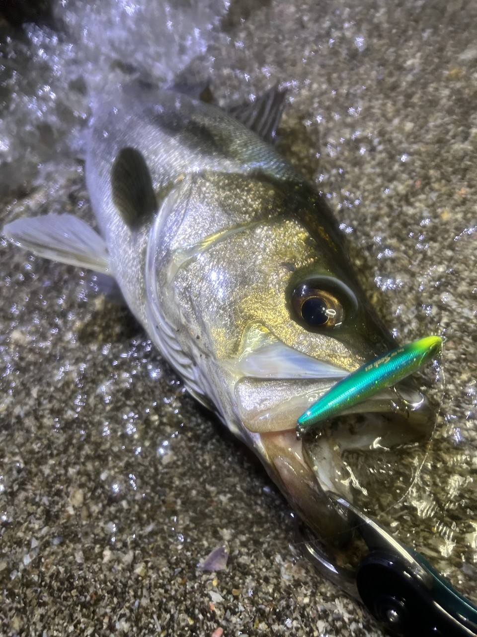 ベイトは確認できませんでしたが、シーバスが回っていることがわかったので、地形変化が絡むスポットにシークを通すと狙い通りヒット❗️