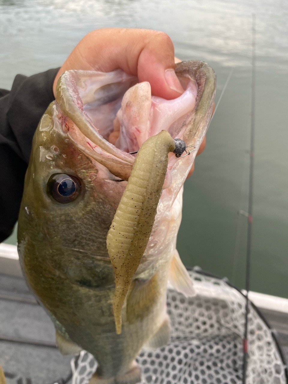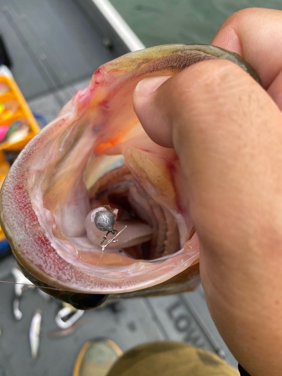 通っているフィールドの水深によってジグヘッドのウェイトに変化をつけて、河川や野池では0.6g~1.8g程度、リザーバーなどでは時に2.7g、3.5gなども用いて深いレンジも攻略可能です。