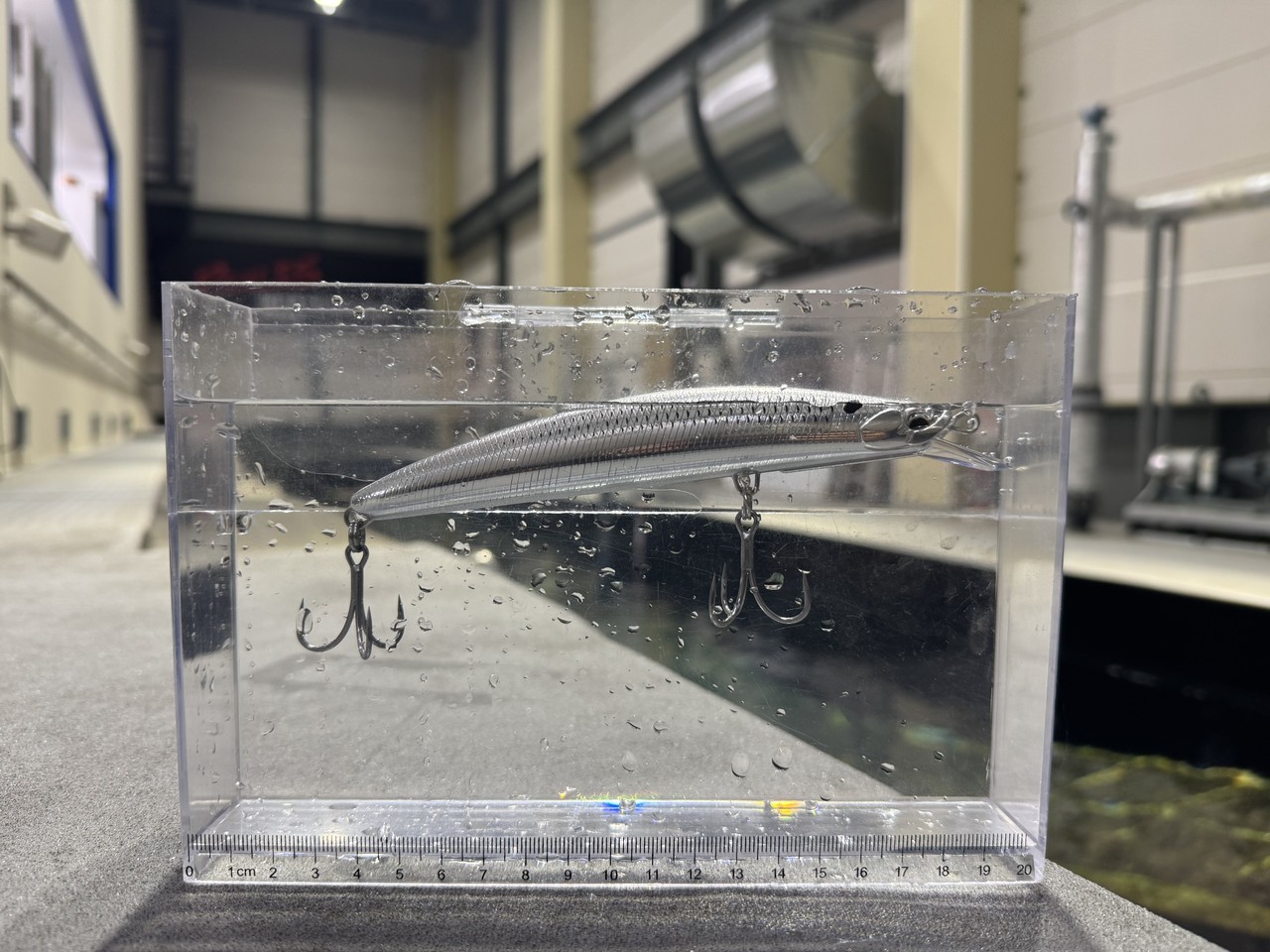 このややお尻下がりの姿勢により、アクション時は水平に近くなります。頭下がりの姿勢に比べ波や流れへの食い込み感が低減し巻き心地の良さに繋がりました。