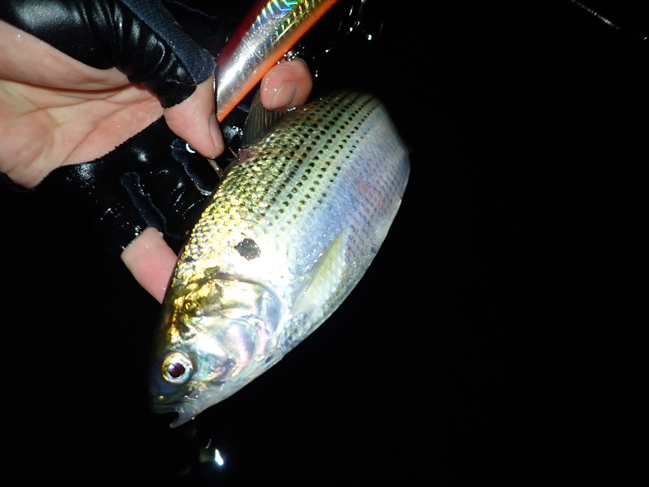 産卵と越冬を意識したシーバスたちはスイッチが入りきっていて、時折、水面を割る捕食音が響く。