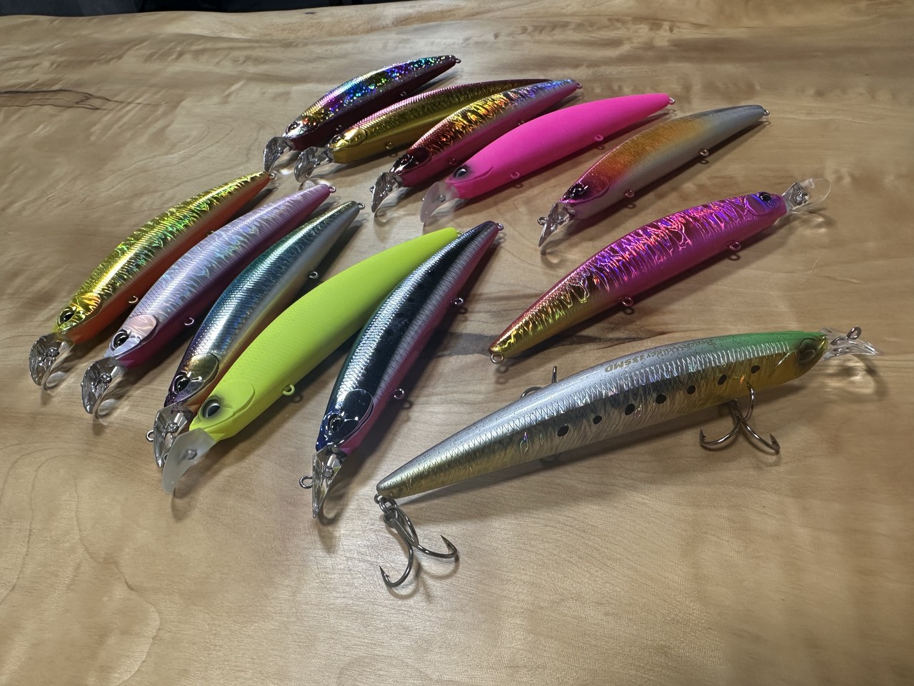 アクシオンスリム105は小さなリップが付いているのが特長でそれで水を受け浮き上がりを抑えてくれる為レンジキープがしやすい、一定のリトリーブで自分の好きなレンジをトレースする事が出来。流れが早く、波の力風が強い時などもルアーを見失わずルアー操作が可能です。イメージはシンキングミノーの様な使い方がオススメです!