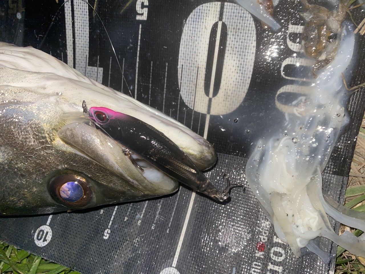 ヒットルアーはマニック95 今年の新色オイルピンクマジックでした。