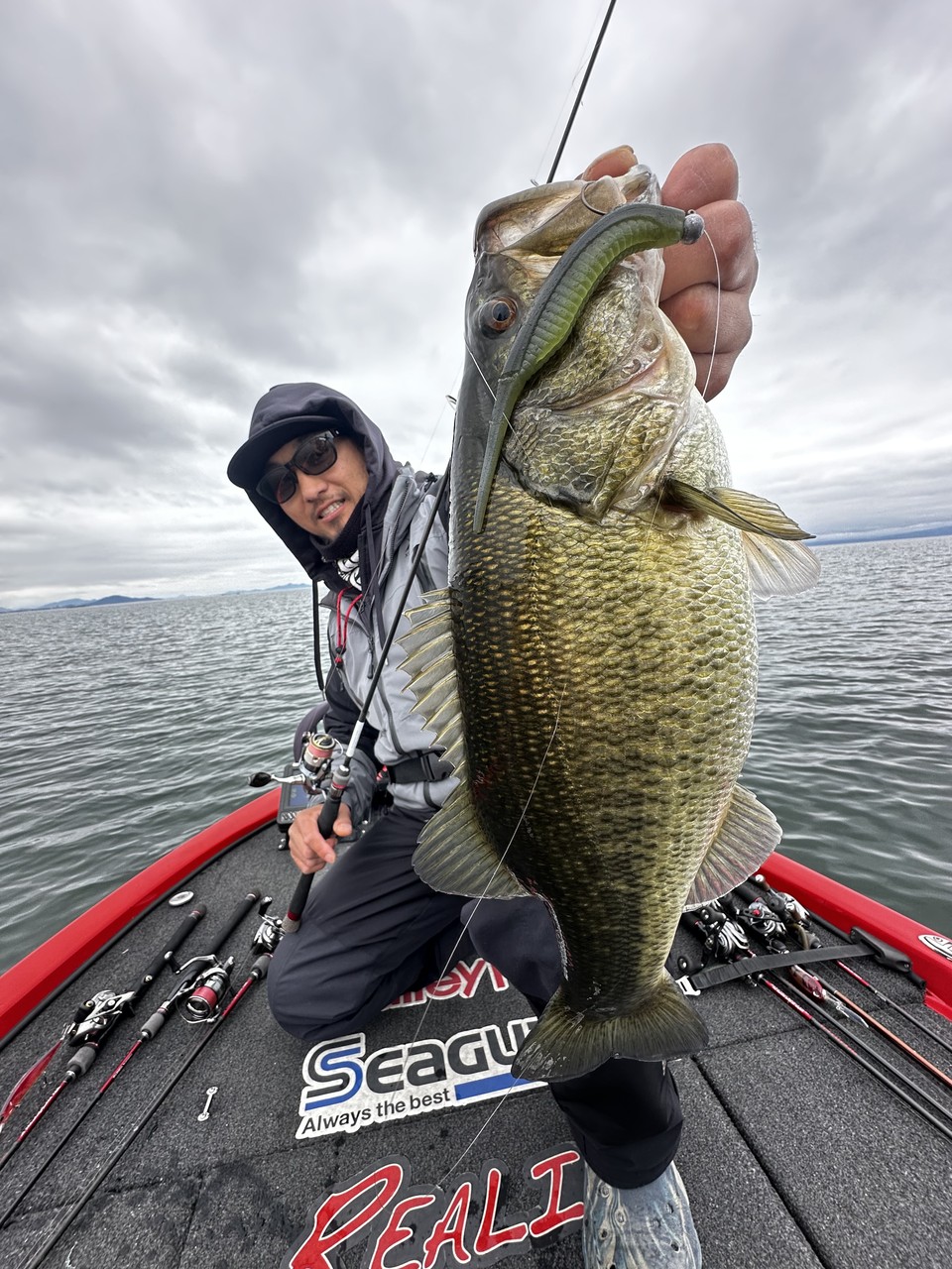 最後に、、これからのバスは浮き気味ではなくボトム付近となりますので全てのリグは一旦ボトムを取ってからほんのちょい浮かせてスイミングやボトムズルズルで狙って下さい。レアリスジャークベイトはロッドティップを下げて出来るだけボトム付近にルアーが届くようにトレースして下さい!アクションはストップ&ゴー!です(^^)